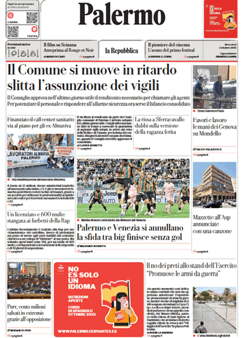 Prima pagina Repubblica Palermo: “Il Comune si muove in ritardo slitta l’assunzione dei vigili”