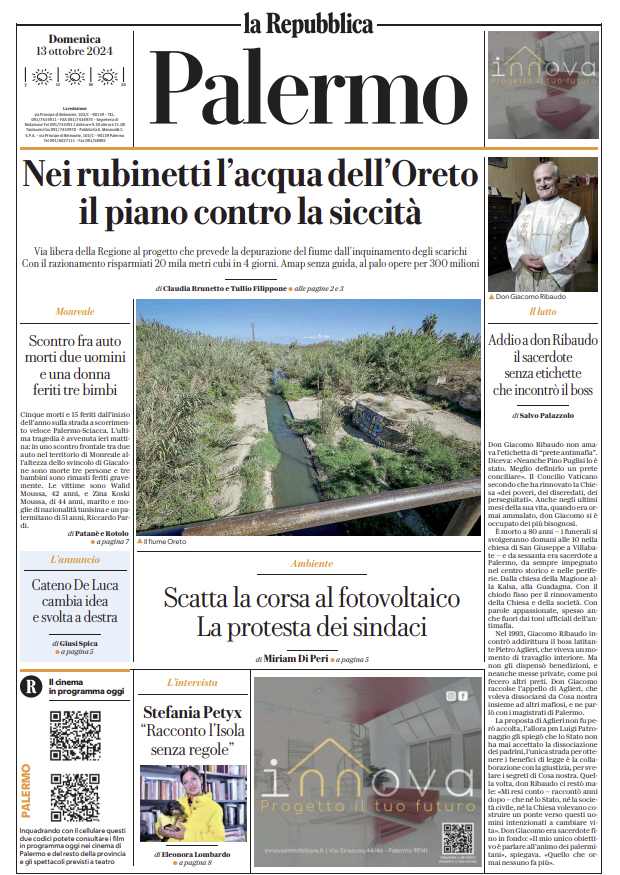 L’edizione odierna de La Repubblica Palermo dedica un titolo in prima pagina alla lotta alla siccità.