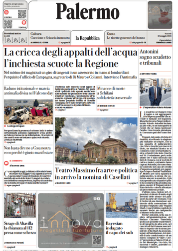 Prima pagina Repubblica Palermo: “La cricca degli appalti dell’acqua. L’inchiesta scuote la Regione”