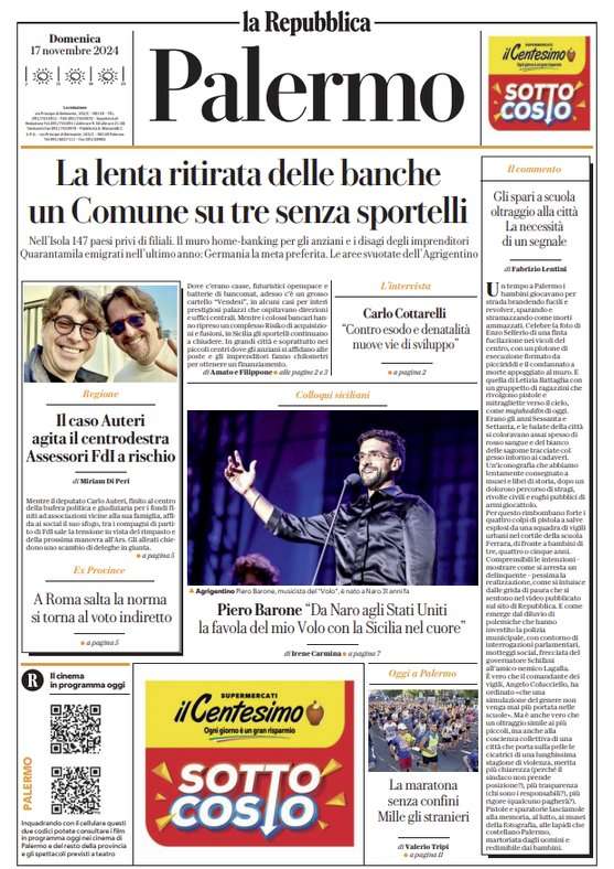 La prima pagina odierna di Repubblica (ed. Palermo) dedica spazio alla Maratona di Palermo, che si svolgerà oggi, domenica 17 novembre.