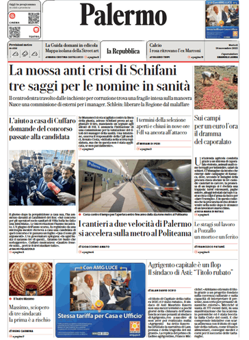 Prima pagina Repubblica Palermo: “La mossa anti crisi di Schifani”