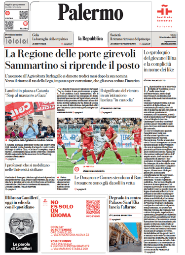 Prime pagine Prima pagina Repubblica Palermo: “La Regione delle porte girevoli” Segui Ilovepalermocalcio su Google News Redazione Ilovepalermocalcio Settembre 20, 2025 Sammartino si riprende il posto Continue Reading Previous Prima pagina Tuttosport: “Scudo Igor”Next Prima pagina Corriere dello Sport: “Fermata Juve”