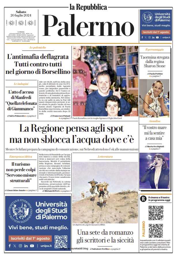 L’edizione odierna de La Repubblica Palermo dedica un titolo in prima pagina alla siccità a Palermo.