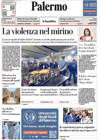 Prime pagine Prima pagina Repubblica Palermo: “La violenza nel mirino” Segui Ilovepalermocalcio su Google News Redazione Ilovepalermocalcio Ottobre 14, 2025 Il dolore rivissuto dai Celesia “Basta vittime” Continue Reading Previous Prima pagina Tuttosport: “Chiudiamola qui”Next Prima pagina Giornale di Sicilia: “Lo sparo mortale e la fuga”
