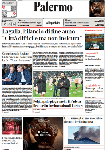 Prima pagina Repubblica Palermo: Lagalla, bilancio di fine anno “Città difficile ma non insicura”