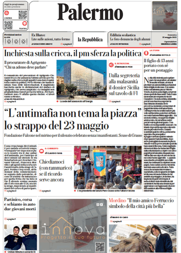 Prima pagina Repubblica Palermo: “L’antimafia non tema la piazza. Lo strappo del 23 maggio”