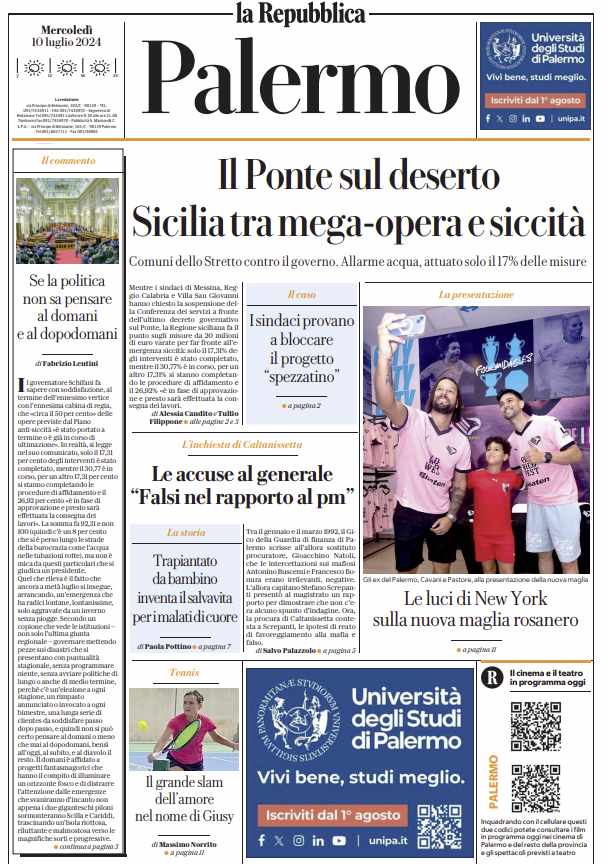 L’edizione odierna de La Repubblica Palermo dedica un titolo in prima pagina alla presentazione della nuova maglia del Palermo.