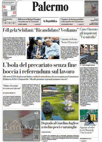 Prima pagina Repubblica Palermo: “L’Isola del precariato senza fine boccia i referendum sul lavoro”