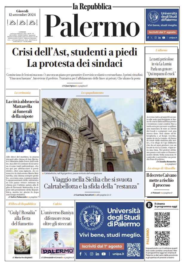 L’edizione odierna de La Repubblica Palermo dedica un titolo in prima pagina alle parole di Baniya in conferenza stampa.