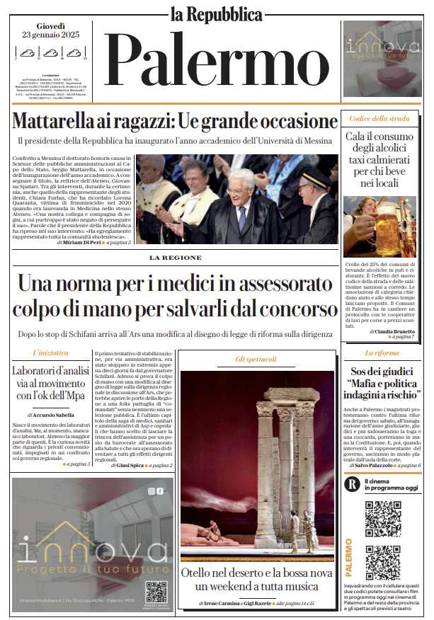 Prima pagina Repubblica Palermo: “Mattarella ai ragazzi: Uè grande occasione”