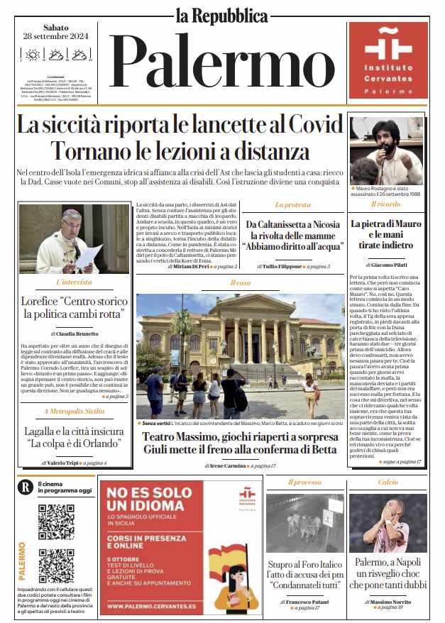 Prima pagina Repubblica Palermo: “Palermo a Napoli un risveglio shock”