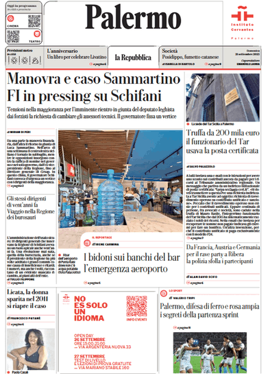 Prime pagine Prima pagina Repubblica Palermo: “Palermo, difesa di ferro e rosa ampia. I segreti della partenza sprint” Segui Ilovepalermocalcio su Google News Redazione Ilovepalermocalcio Settembre 21, 2025 Manovra e caso Sammartino FI in pressing su Schifani Continue Reading Previous Prima pagina Giornale di Sicilia: “Il metodo Inzaghi dietro il volo del Palermo”Next Prima pagina Gazzetta dello Sport: “C’è il derby di Roma”
