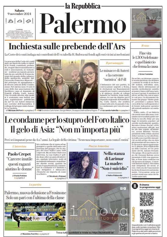 L’edizione odierna de “La Repubblica – Palermo” dedica un titolo in prima pagina al Palermo e la delusione contro il Frosinone.