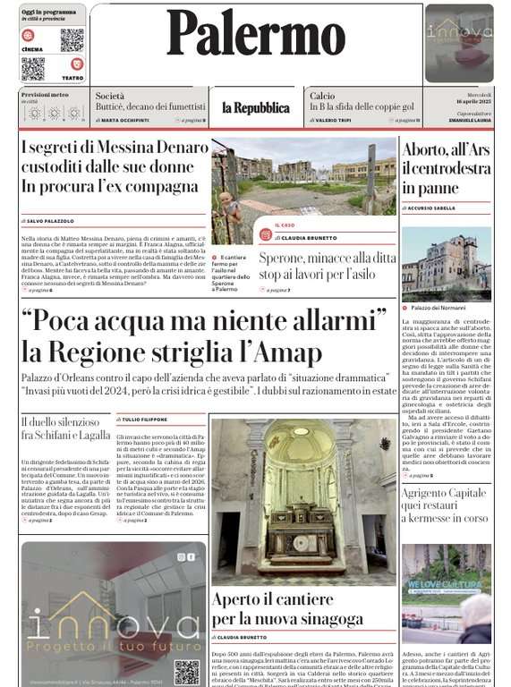 Prime pagine Prima pagina Repubblica Palermo: “Poca acqua ma niente allarmi” Segui Ilovepalermocalcio su Google News Redazione Ilovepalermocalcio Aprile 16, 2025 Ancora problema siccità in sicilia Continue Reading Previous Prima pagina Gazzetta dello Sport: “Antonio vota Napoli”Next Prima pagina Giornale di Sicilia: “Tutto il boss nei suoi appunti”