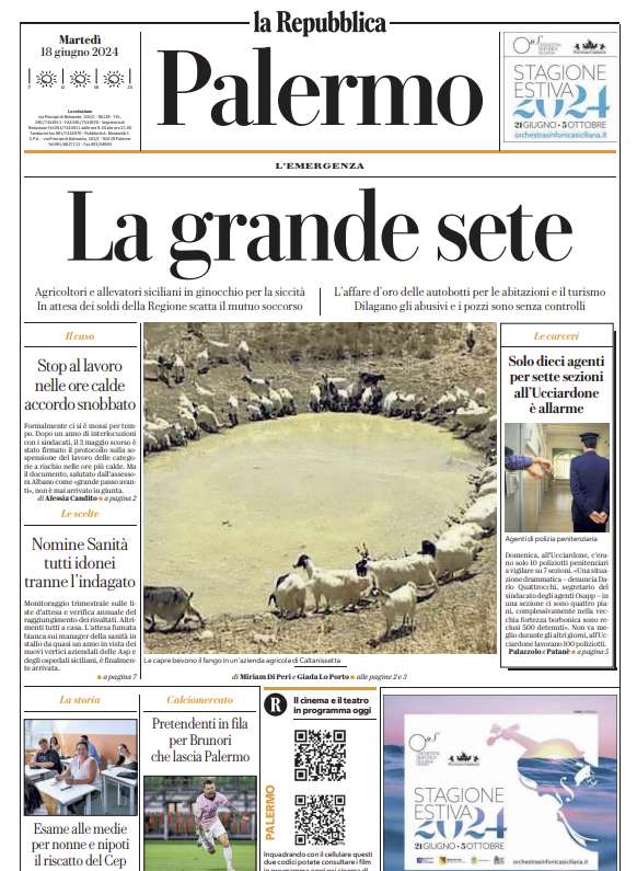 Prima pagina Repubblica Palermo: “Pretendenti in fila per Brunori che lascia Palermo”