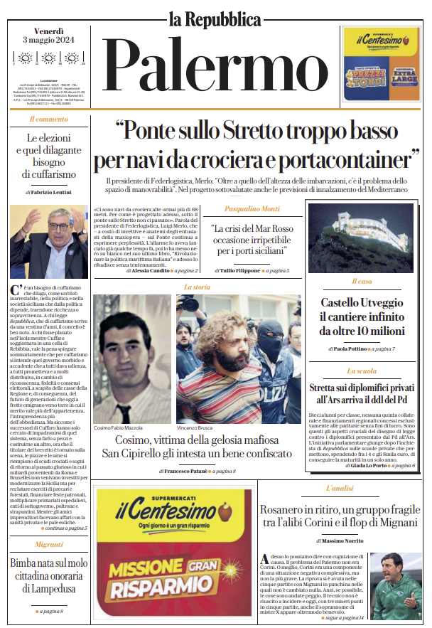 Prima pagina Repubblica Palermo: “Rosanero in ritiro, un gruppo fragile tra l’alibi Corini e il flop Mignani”