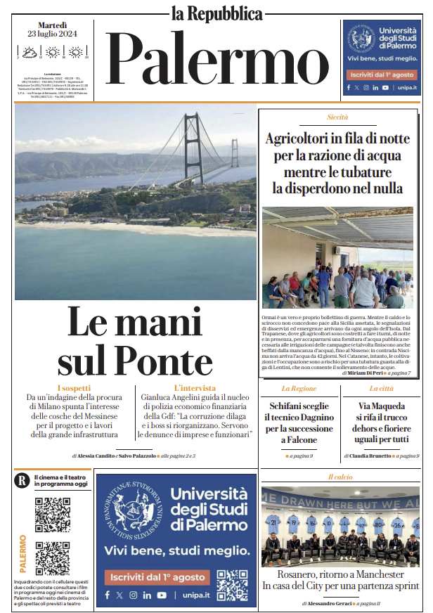 Prima pagina Repubblica Palermo: “Rosanero, ritorno a Manchester. In casa del City per una partenza sprint”
