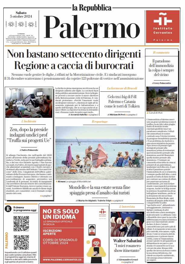L’edizione odierna de La Repubblica Palermo dedica un titolo in prima pagina alle parole di Walter Sabatini.