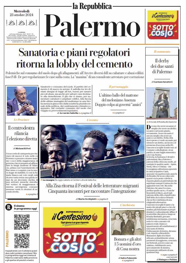Prima pagina Repubblica Palermo: “Sanatoria e piani regolatori, ritorna la lobby del cemento”