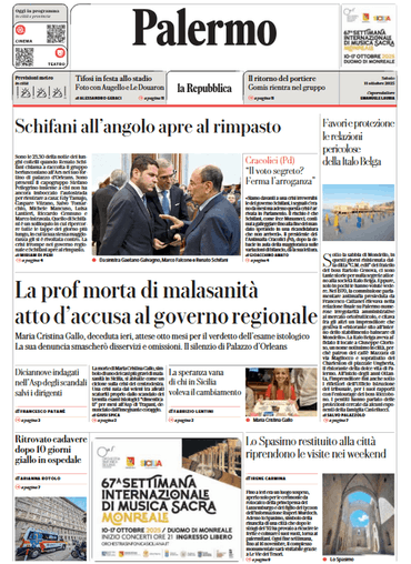 Prima pagina Repubblica Palermo: “Schifani all’angolo apre al rimpasto”