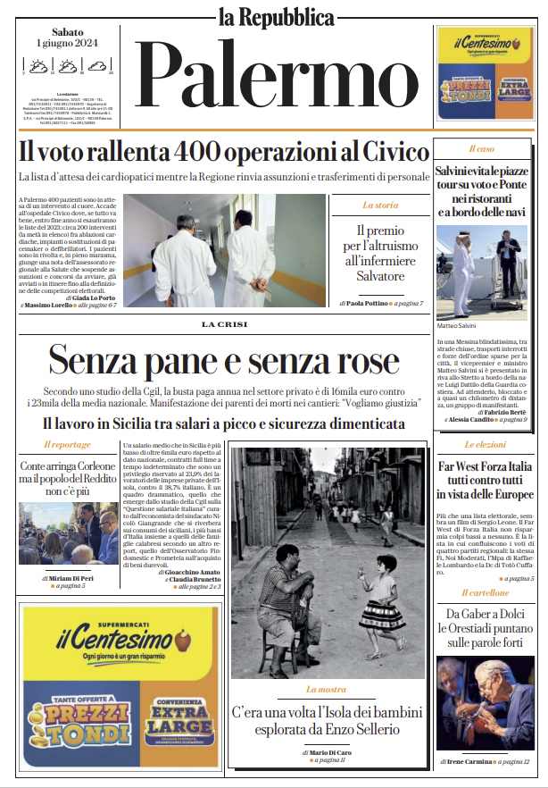 L’edizione odierna de “La Repubblica – Palermo” dedica un titolo in prima pagina alla crisi del lavoro a Palermo e in Sicilia.