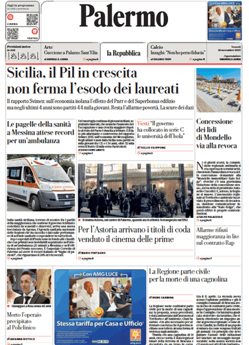 Prima pagina Repubblica Palermo: “Sicilia, il Pil in crescita non ferma l’esodo dei laureati”