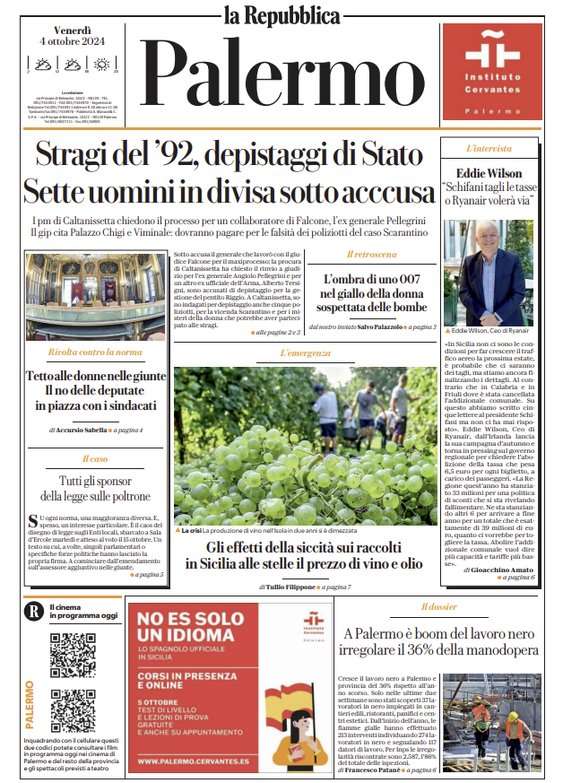 L’edizione odierna de La Repubblica Palermo dedica un titolo in prima pagina alle Stragi del 1992.