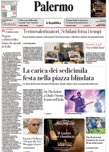 Prima pagina Repubblica Palermo: “Termovalorizzatori, Schifani forza i tempi”
