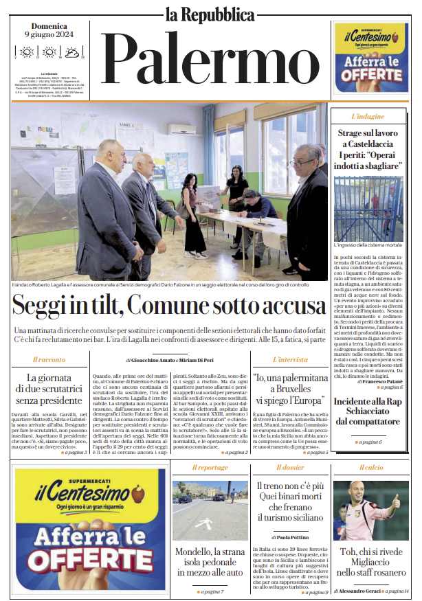 Prima pagina Repubblica Palermo: “Toh, chi si rivede. Migliaccio nello staff rosanero”