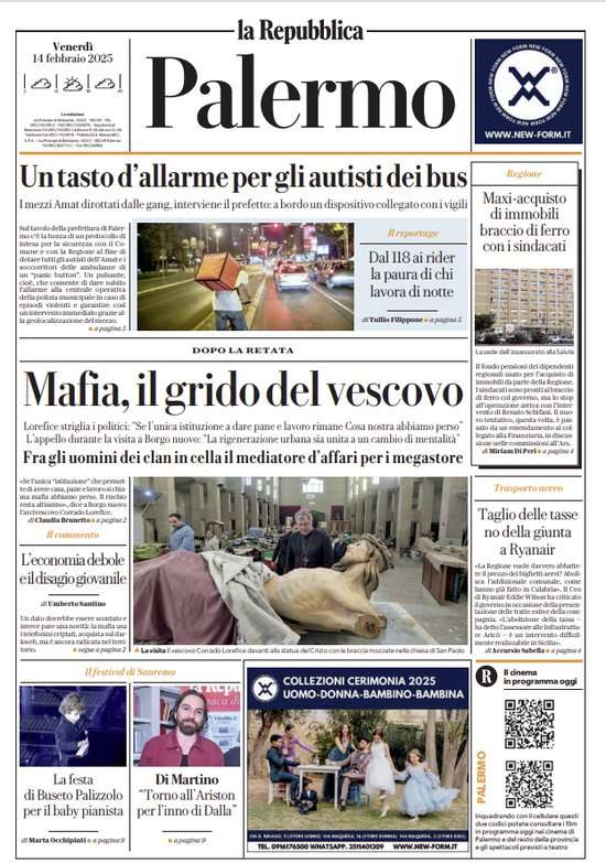 Prima pagina Repubblica Palermo: “Un tasto di allarme per gli autisti del bus”