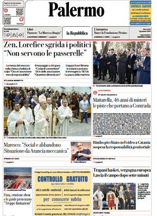 Prima pagina Repubblica Palermo: Zen, Lorefice sgrida i politici “Non servono le passerelle”