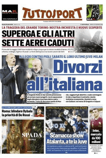 Prime pagine Prima pagina Tuttosport: “Divorzi all’Italiana” Segui Ilovepalermocalcio su Google News Redazione Ilovepalermocalcio Aprile 25, 2024 L’edizione odierna di Tuttosport dedica la prima pagina all’ultimo Juve-Milan per Pioli e Allegri. Continue Reading Previous Prima pagina Gazzetta dello Sport: “Derby per un’altra stella”Next Prima pagina Repubblica Palermo: “Gli eroi siciliani della liberazione”