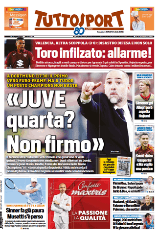 Prima pagina Tuttosport: “Haaland, gli Oasis Falcone e Borsellino Palermo, che notte!”