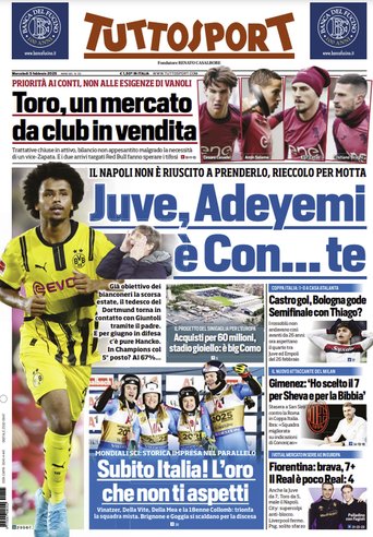 Prime pagine Prima pagina Tuttosport: “Juve, Adeyemi è con te” Segui Ilovepalermocalcio su Google News Redazione Ilovepalermocalcio Febbraio 5, 2025 L’edizione odierna di Tuttosport dedica un titolo in prima pagina alla Juventus. Continue Reading Previous Prima pagina Gazzetta dello Sport: “Sono in diavolo”Next Prima pagina Repubblica Palermo: “Pohjanpalo è già ‘u vichingu”