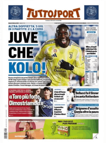 Prime pagine Prima pagina Tuttosport: “Juve, che Kolo” Segui Ilovepalermocalcio su Google News Redazione Ilovepalermocalcio Febbraio 8, 2025 L’edizione odierna di Tuttosport dedica un titolo in prima pagina alla Juventus. Continue Reading Previous Prima pagina Corriere dello Sport: “Kolo solo”Next Prima pagina Repubblica Palermo: “Dionisi, operazione playoff”