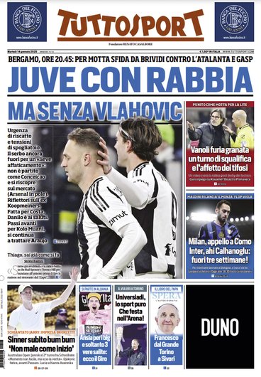 Prima pagina Tuttosport: “Juve con rabbia ma senza Vlahovic”
