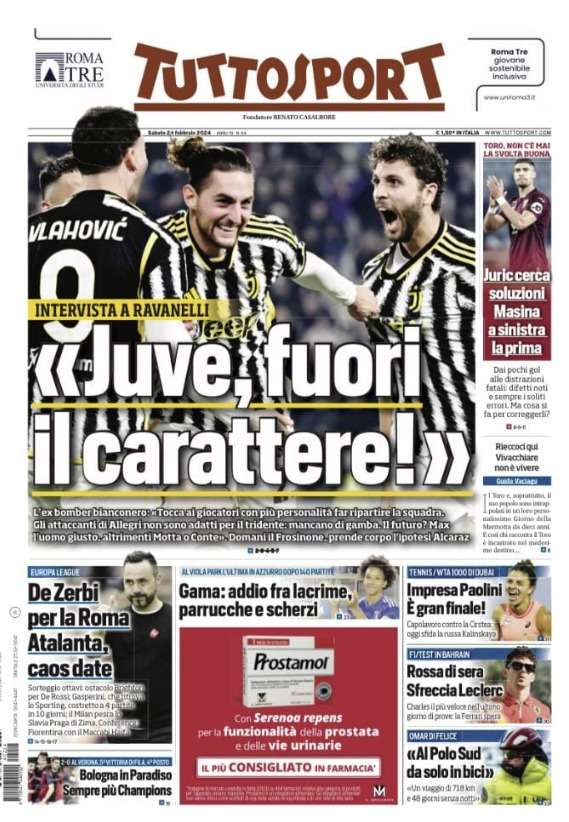 Prime pagine Prima pagina Tuttosport: “«Juve, fuori il carattere»” Segui Ilovepalermocalcio su Google News Redazione Ilovepalermocalcio Febbraio 24, 2024 L’edizione odierna di Tuttosport dedica la prima pagina ad un’intervista a Ravanelli che si esprime sulla Juve. Continue Reading Previous Prima pagina Gazzetta dello Sport: “Vinco l’Europeo”Next Prima pagina Giornale di Sicilia: “Il Palermo si fa rimontare. Occasione sprecata”