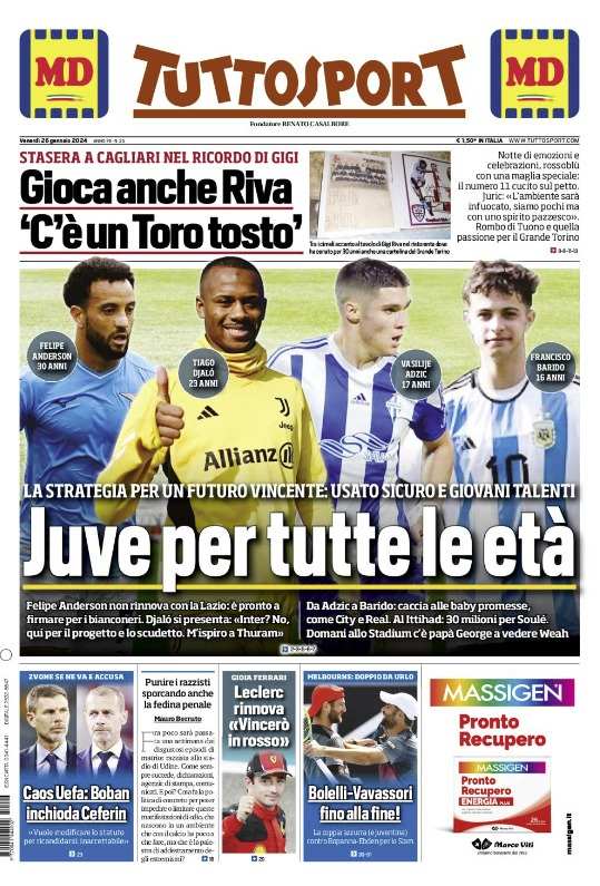 Prime pagine SERIE A Prima Pagina Tuttosport: “Juve, per tutte le età” Segui Ilovepalermocalcio su Google News Redazione Ilovepalermocalcio Gennaio 26, 2024 L’edizione odierna di Tuttosport dedica la prima pagina alla Juventus. Tags: serie a Continue Reading Previous Prima Pagina Gazzetta dello Sport: “Parla Giroud: «Sempre con Pioli»”Next Prima Pagina Giornale di Sicilia: “La rete di Safina fra voti e luminarie”