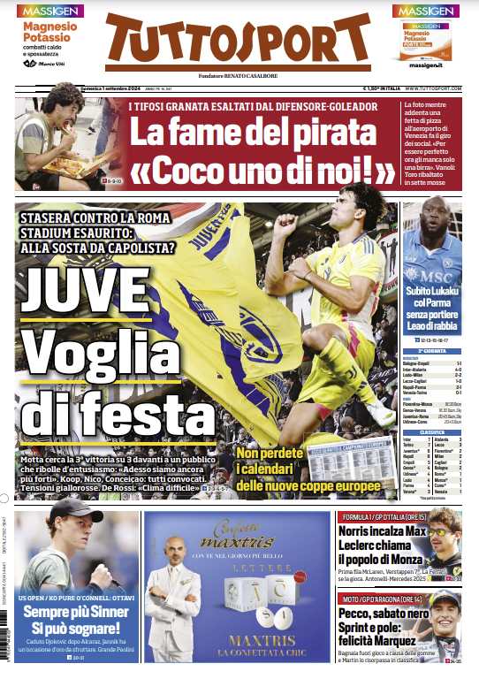 Prime pagine Prima pagina Tuttosport: “Juve, voglia di festa” Segui Ilovepalermocalcio su Google News Redazione Ilovepalermocalcio Settembre 1, 2024 L’edizione odierna di Tuttosport dedica un titolo in prima pagina alla Juventus. Continue Reading Previous Prima pagina Gazzetta dello Sport: “Milan, pari e caos”Next Prima pagina Repubblica Palermo: “Medico radiato in Inghilterra, i fari della Regione sul Civico”