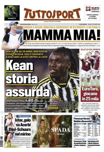 Prime pagine Prima pagina Tuttosport: “Kean storia assurda” Segui Ilovepalermocalcio su Google News Redazione Ilovepalermocalcio Marzo 30, 2024 L’edizione odierna di Tuttosport dedica la prima pagina a Kean. Continue Reading Previous Prima pagina Gazzetta dello Sport: “Uragano Sinner”Next Prima pagina Giornale di Sicilia: “Rifiuti all’estero, taglio beffa”