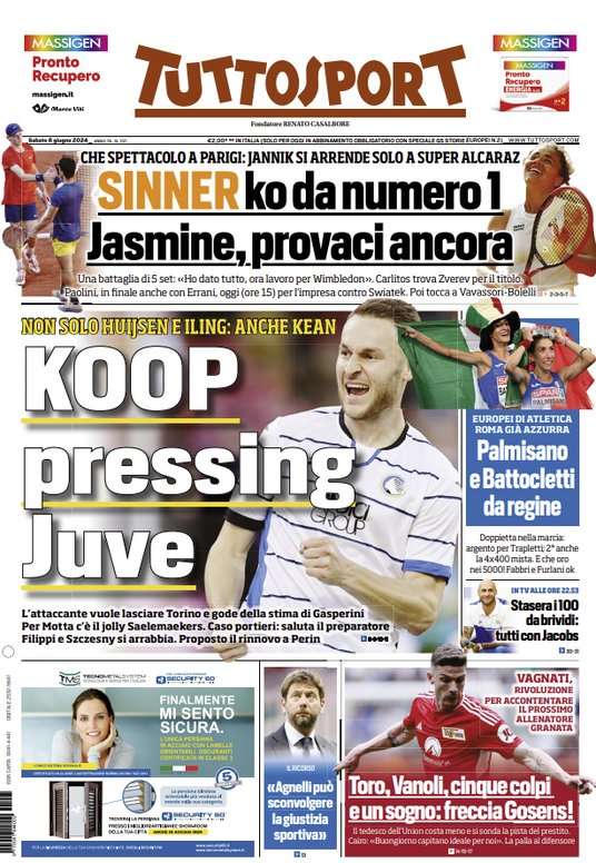 Prime pagine Prima pagina Tuttosport: “Koop pressing Juve” Segui Ilovepalermocalcio su Google News Redazione Ilovepalermocalcio Giugno 8, 2024 L’edizione odierna di Tuttosport dedica la prima pagina al mercato della Juve e a Koop. Continue Reading Previous Prima pagina Gazzetta dello Sport: “Diavolo a quattro”Next Repubblica Palermo: “Dionisi sulla panchina rosanero: è fatta contratto biennale, obiettivo serie A”