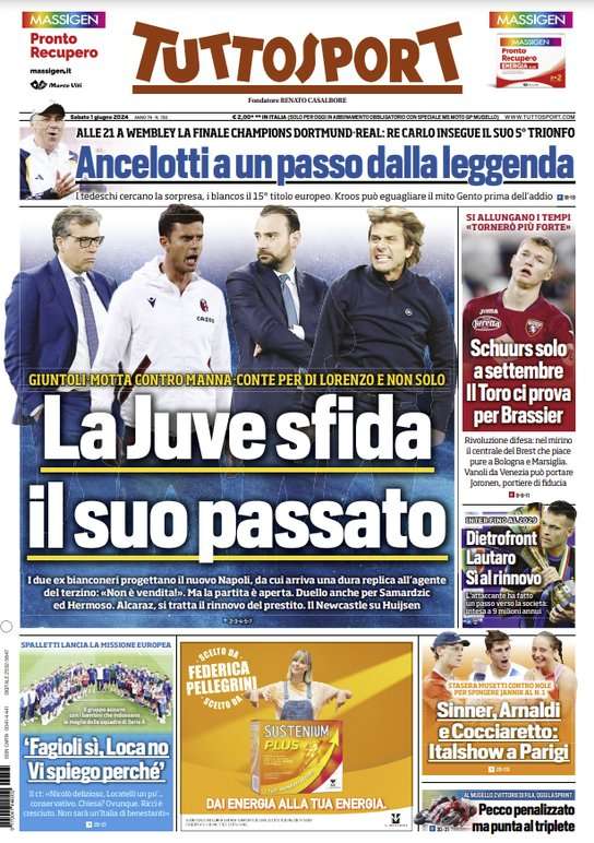 L’edizione odierna di Tuttosport dedica la prima pagina alla Juve che sfida il suo passato.