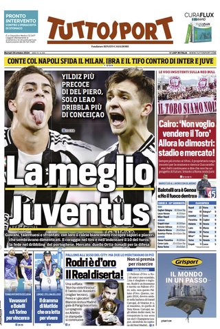 Prime pagine Prima pagina Tuttosport: “La meglio Juventus” Segui Ilovepalermocalcio su Google News Redazione Ilovepalermocalcio Ottobre 29, 2024 L’edizione odierna di Tuttosport dedica un titolo in prima pagina alla Juventus. Continue Reading Previous Prima pagina Gazzetta dello Sport: “Pallone d’oro a Rodri, schiaffo al Real”Next Prima pagina Repubblica Palermo: “Cantiere Palermo”