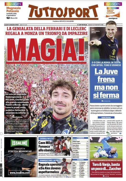 Prime pagine Prima pagina Tuttosport: “Magia” Segui Ilovepalermocalcio su Google News Redazione Ilovepalermocalcio Settembre 2, 2024 L’edizione odierna di Tuttosport dedica un titolo in prima pagina alla vittoria di Leclerc. Continue Reading Previous Prima pagina Gazzetta dello Sport: “Signora in rosso”Next Prima pagina Giornale di Sicilia: “Dionisi cerca l’assetto giusto per il decollo”