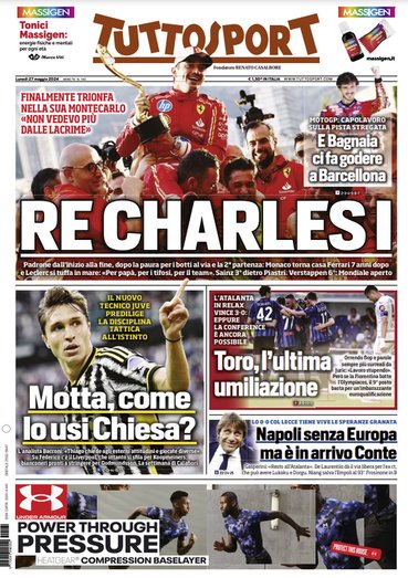 L’edizione odierna di Tuttosport dedica la prima pagina a Leclerc e la vittoria a Montecarlo.
