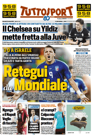 Prime pagine Prima pagina Tuttosport: “Retegui da Mondiale” Segui Ilovepalermocalcio su Google News Redazione Ilovepalermocalcio Ottobre 15, 2025 Italia almeno agli spareggi Continue Reading Previous Prima pagina Gazzetta dello Sport: “Italia da Mondiale”Next Prima pagina Repubblica Palermo: “Violenza la ricetta del governo”