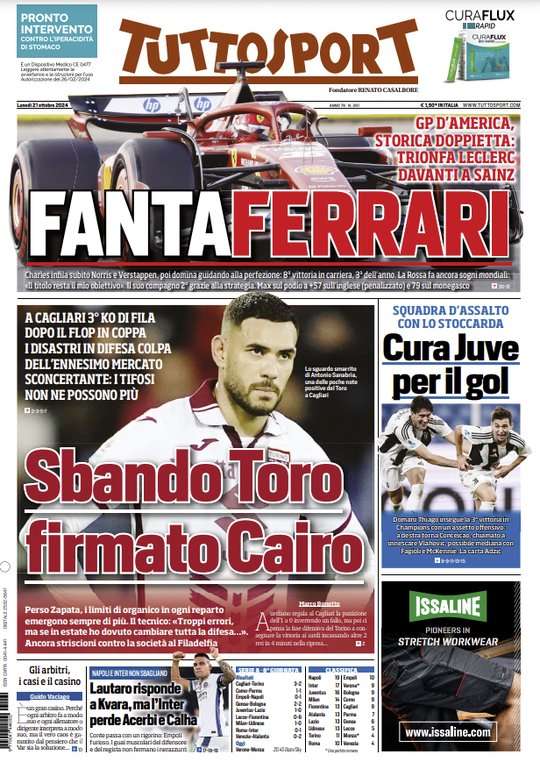 Prime pagine Prima pagina Tuttosport: “Sbando Toro, firmato Cairo” Segui Ilovepalermocalcio su Google News Redazione Ilovepalermocalcio Ottobre 21, 2024 L’edizione odierna di Tuttosport dedica un titolo in prima pagina al Torino. Continue Reading Previous Prima pagina Gazzetta dello Sport: “Oro Lautaro”Next Prima pagina Giornale di Sicilia: “Stato dì emergenza per i danni del maltempo”