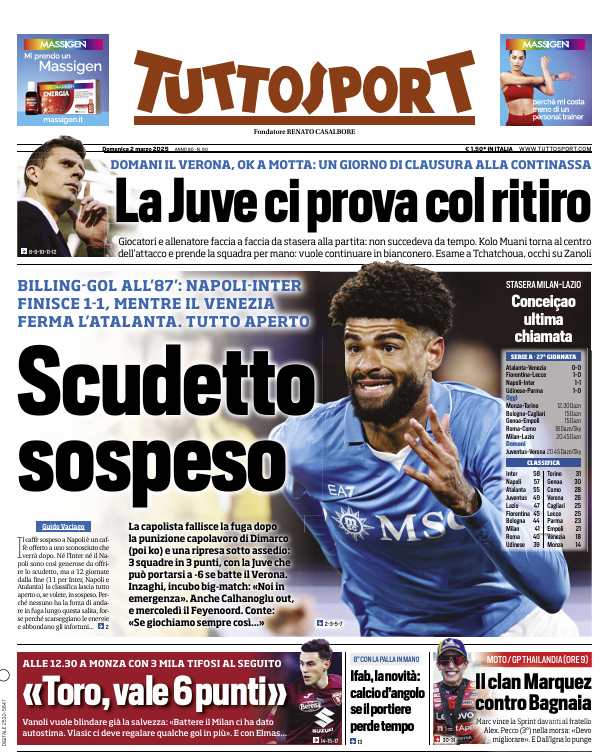 Prime pagine Prima pagina Tuttosport: “Scudetto sospeso” Segui Ilovepalermocalcio su Google News Redazione Ilovepalermocalcio Marzo 2, 2025 L’edizione odierna di Tuttosport dedica un titolo in prima pagina allo scudetto. Continue Reading Previous Prima pagina Gazzetta dello Sport: “L’Inter tiene il punto”Next Prima pagina Repubblica Palermo: “Per i rosa test Brescia: «Adesso serve serenità»”