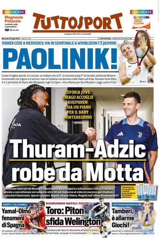 Prime pagine Prima pagina Tuttosport: “Thuram-Adzic, roba da Motta” Segui Ilovepalermocalcio su Google News Redazione Ilovepalermocalcio Luglio 10, 2024 L’edizione odierna di Tuttosport dedica un titolo in prima pagina alla Juventus. Continue Reading Previous Prima pagina Gazzetta dello Sport: “Il ragazzo D’oro”Next Prima pagina Repubblica Palermo: “Le luci di New York sulla nuova maglia rosanero”