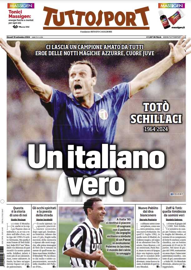 L’edizione odierna di Tuttosport dedica un titolo in prima pagina alla morte di Totò Schillaci.